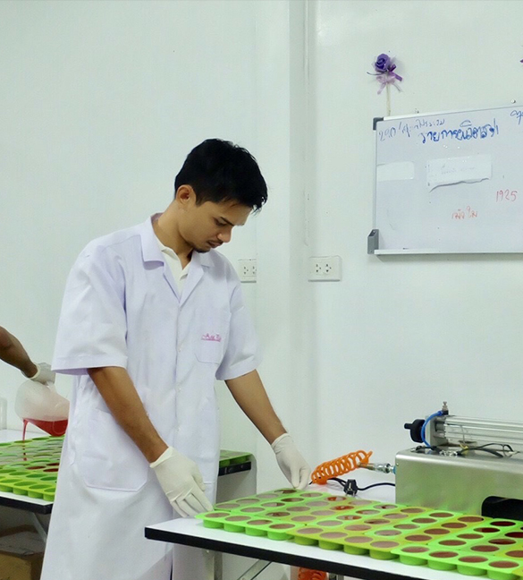 2.4 ฝ่ายผลิตจะเริ่มผลิตสินค้าตามที่ผู้ประกอบการได้ยืนยันตามการเทสผลิตภัณฑ์ (ใช้เวลา 20 วันนับจากวันโอนมัดจำ)